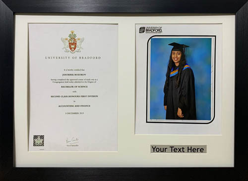University Certificate Frames Category : Certificate Frames 08 Aug 2020 Have you recently graduated from university? Do you need your University certificate framing? We have all types of stylish frames to suit your university colours and we can deliver nationwide to fit your university degree and certificate in one frame. View our Certificate Frames. Read More