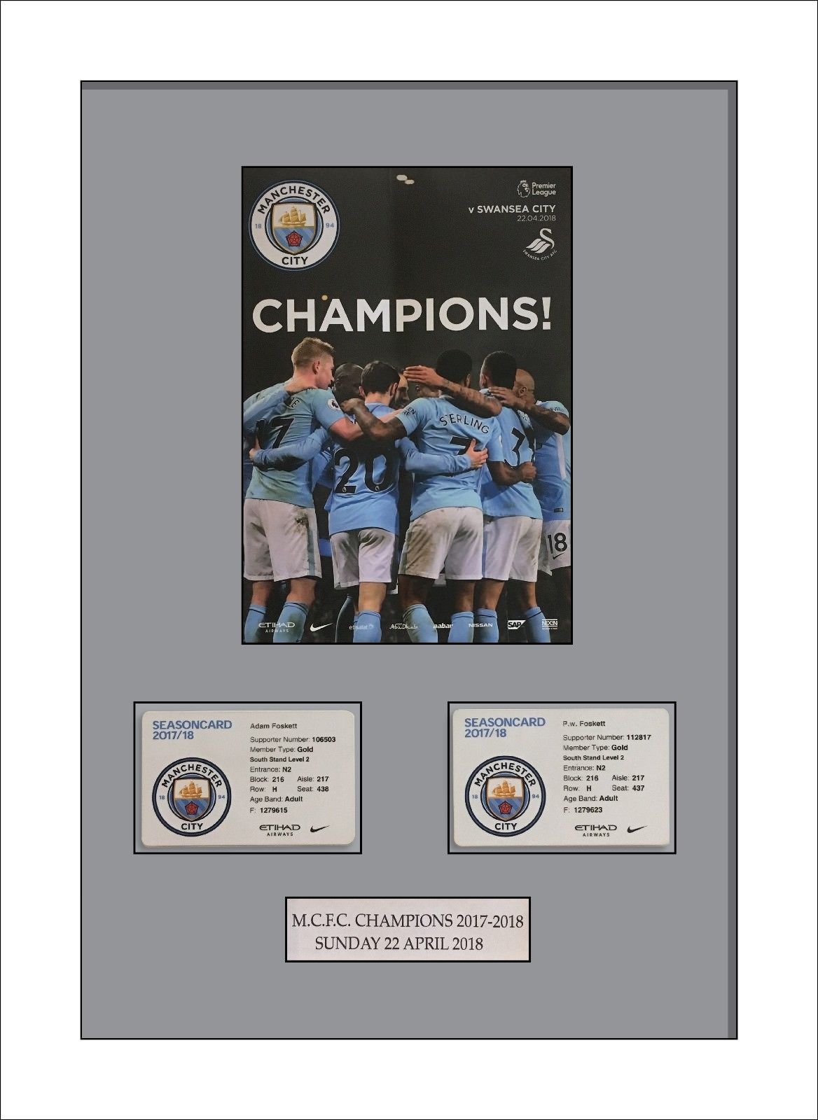 Frame for 2x Season Tickets credit card size and football program 8" x 6" size and title