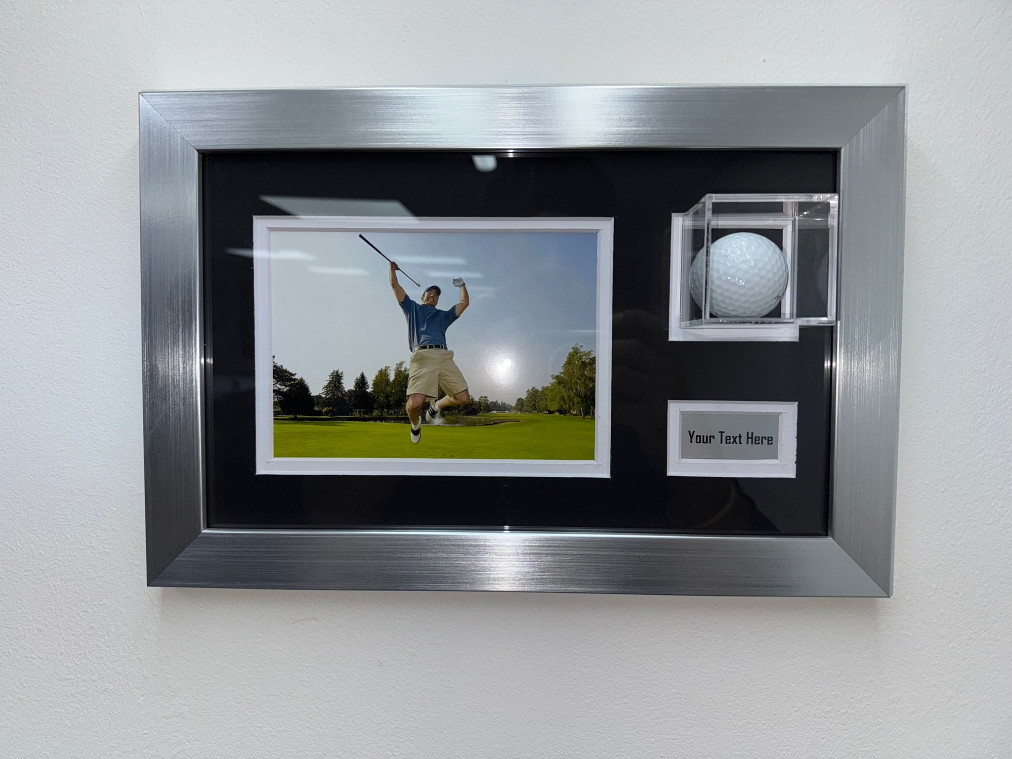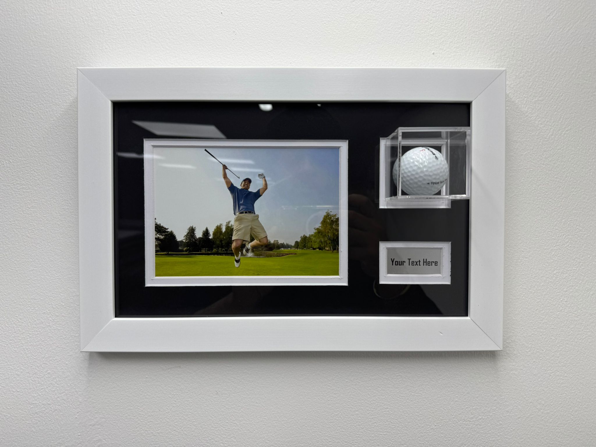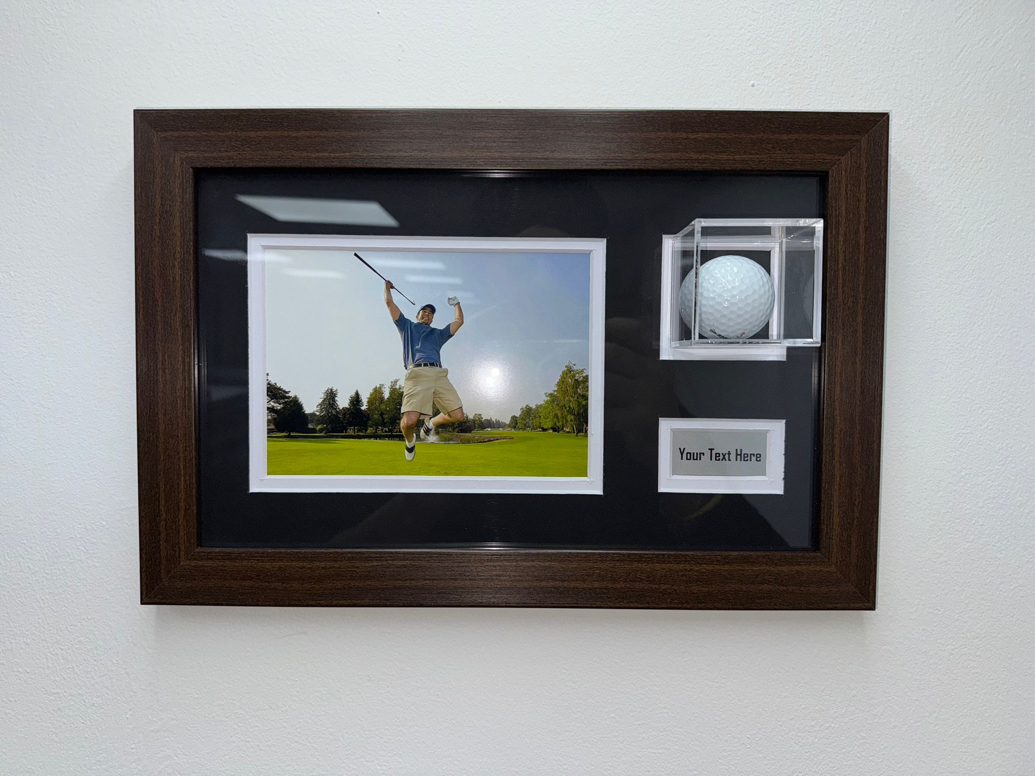 Perfect for displaying a hole-in-one ball, signed golf ball, or tournament memento, this custom-crafted frame is an excellent addition to any golfer's collection, whether at home, in the clubhouse, or as part of a memorabilia display.